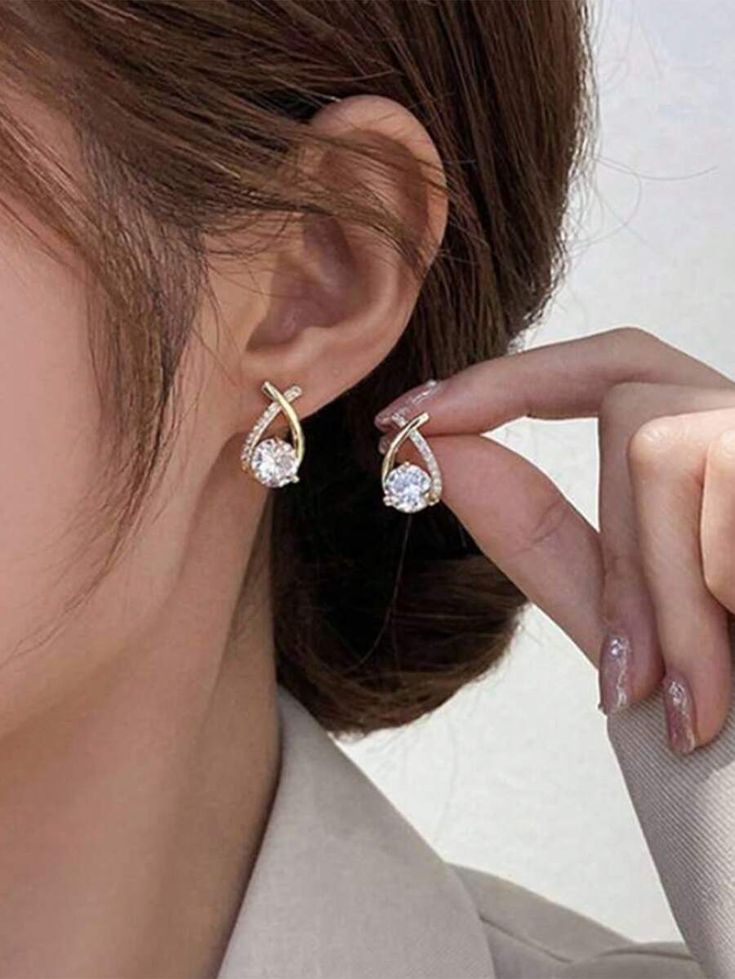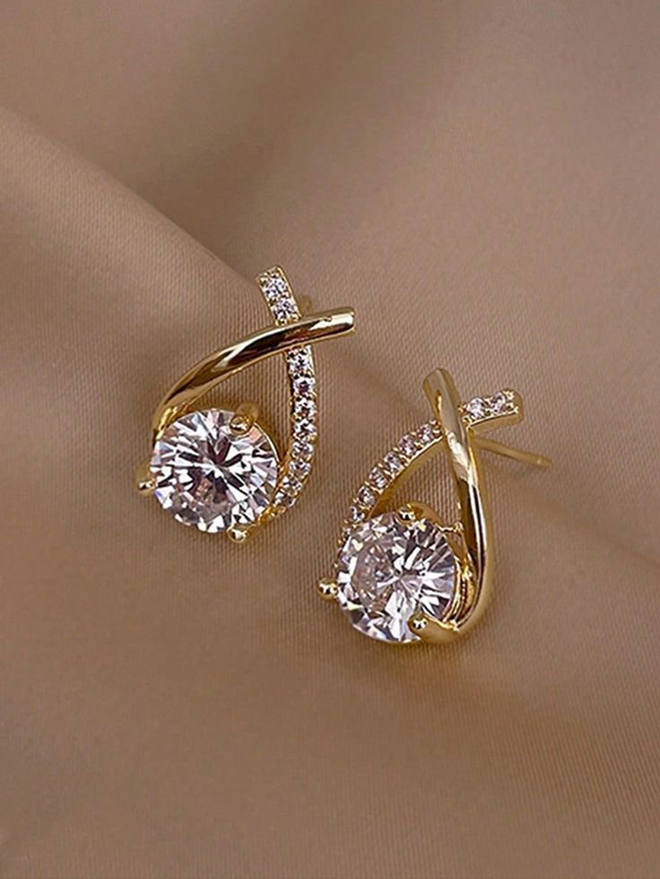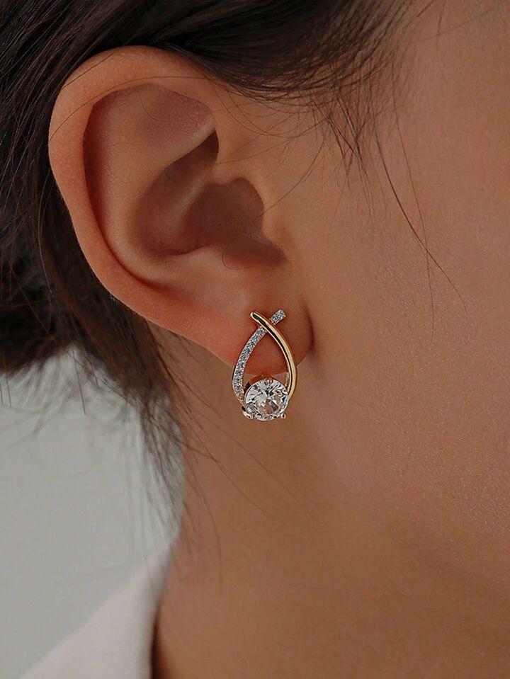 Enhance your style with these elegant gold crystal drop stud earrings. Featuring a sparkling crystal stone and a sleek gold finish, these earrings offer a classy and modern look. Their lightweight design makes them comfortable for everyday wear while also being perfect for parties and special occasions.